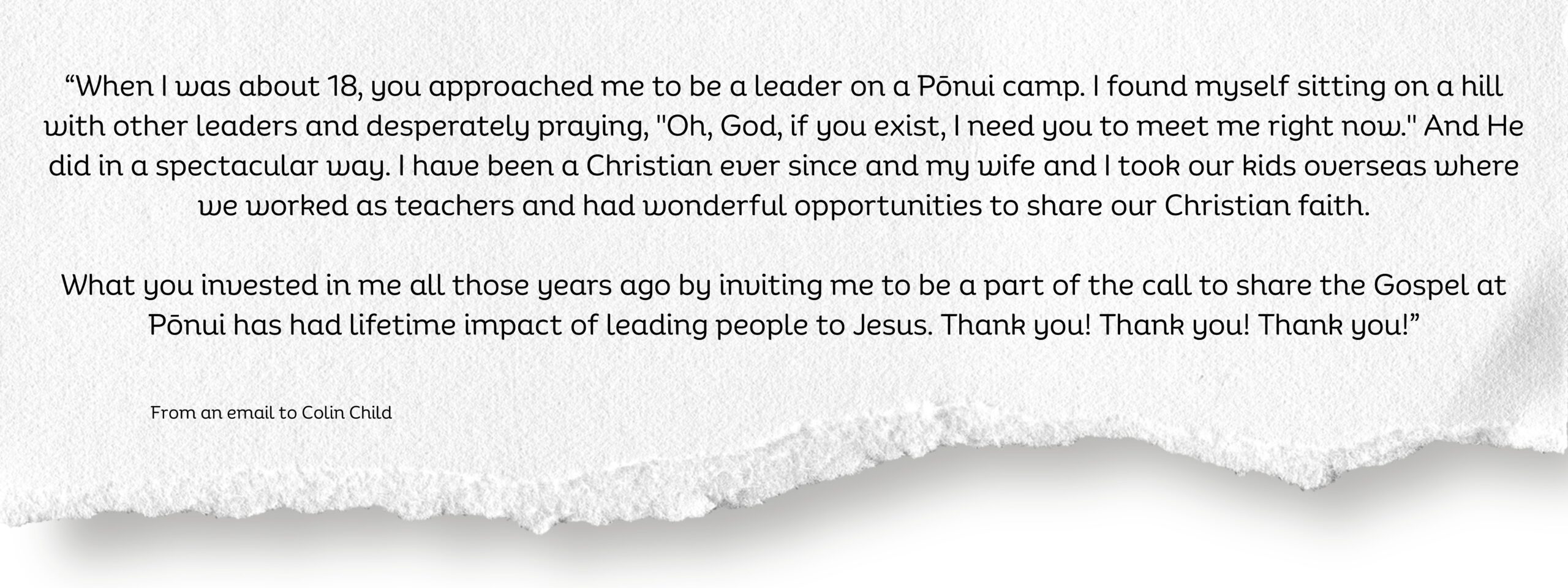 One of these comes from Colin Child, who first encountered Scripture Union as a teenage camper on Pōnui Island in 1965. It was there he prayed to follow Jesus — a decision that shaped his whole life. He went on to become a camp leader, director, and mentor, and continues to be inspired by the vision, leadership, and youth mentoring programmes of Scripture Union.