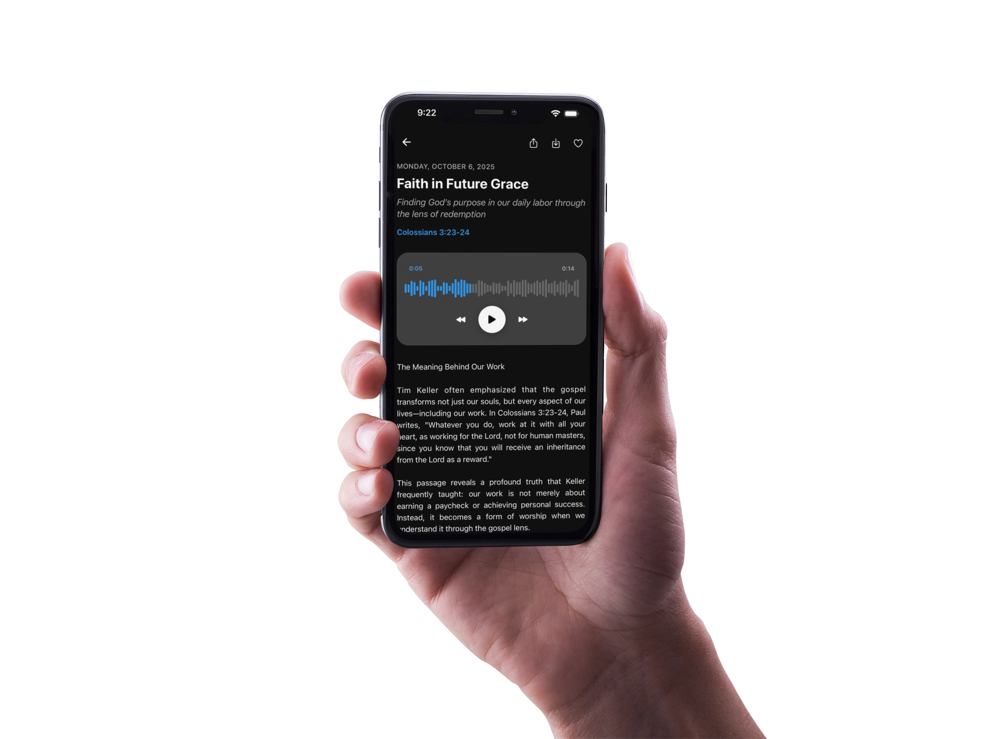 We know that you probably already have a bible app on your device, but having the Bible in the Engage App makes it that much easier for you. You can listen and read the reading in our App, but if you need to access the Bible you don't even have to leave the app. You can view the ESV Bible (with audio) right inside the Engage App.